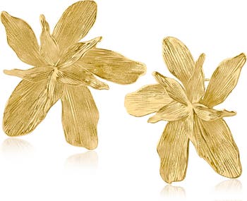 Ridged flowers bring rich dimension and gleam to your lobes in these eye-catching earrings plated in warm goldtone.