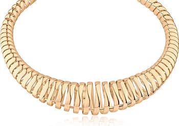 Show off stunning shine with this polished collar necklace composed of dimensional coils in a graduated silhouette.