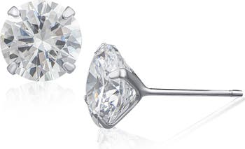 Round-cut cubic zirconia lend elegant shimmer to stud earrings subtly shaped like a martini glass.