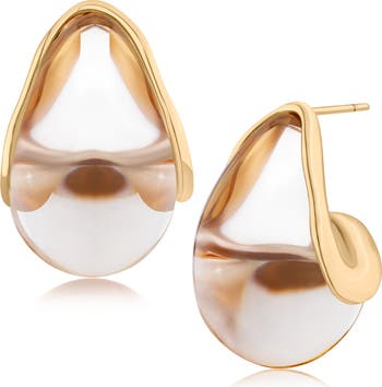 Sculpted edges and lucite detailing distinguish polished stud earrings that lend a modern flourish to your stack.