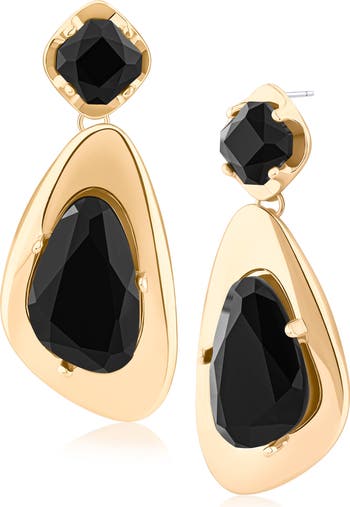 Free-form shapes bring a molten look to polished drop earrings complete with inky prong-set crystals.