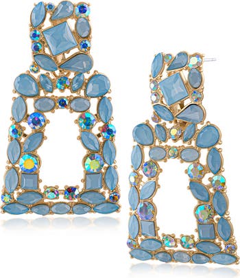 Mixed-cut crystals illuminate these geometric drop earrings that bring instant glamour to your look.