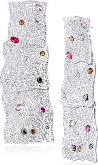 Scattered crystals and textured discs catch the light on these cascading drop earrings that bring glamorous shine to your night-out looks.