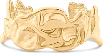 A molten, organic shape defines the statement appeal of a cuff bracelet featured in a gleaming goldtone plate.