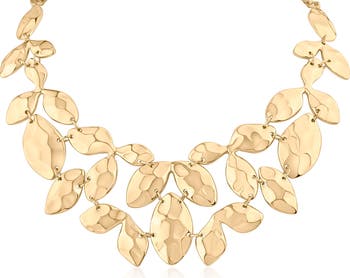 Organically shaped leaves and petals compose this striking bib necklace boasting a polished finish for captivating shine.