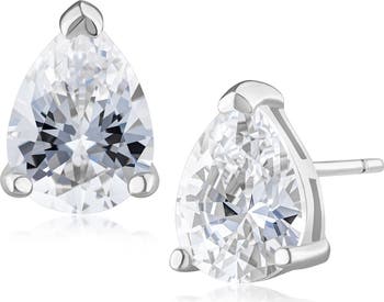 Pear-cut cubic zirconia lend elegant shimmer to classic stud earrings designed to illuminate your lobes.