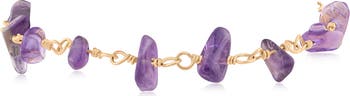 Bring a pop of color to your wrist with this chain bracelet plated in warm goldtone and showcasing raw-cut amethyst stones.