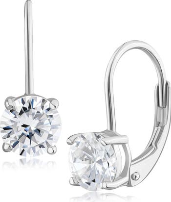 Round-cut bright-white cubic zirconia lend elegant shimmer and shine to minimalist earrings done in a high-shine finish.