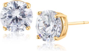 Round-cut cubic zirconia lend elegant shimmer to classic stud earrings designed to illuminate your lobes.