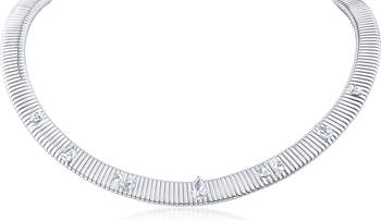 Sparkly cubic zirconia catch the light on this polished omega-chain necklace that offers glamorous shine whether layered or shown off solo.