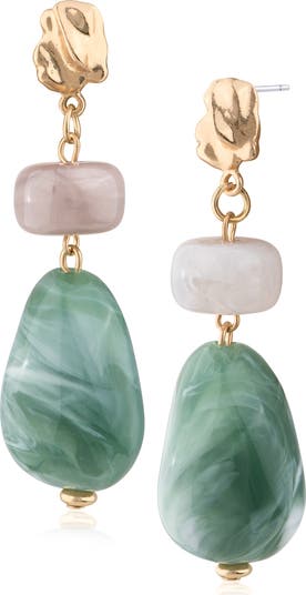 Pretty stone-inspired drops give an earthy feel to earrings done in a high-shine finish to embolden your look.