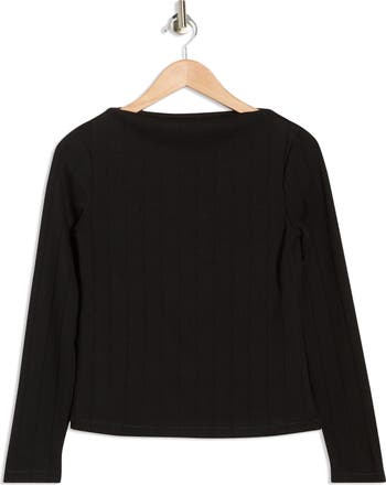 An elevated essential, this long-sleeve top is framed by an elegant boat neck and textured by wide ribbed stitches.