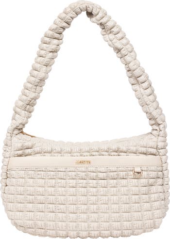 Rich bubble-texture adds dimension to a softside shoulder bag finished with multiple pockets for a well-organized interior.