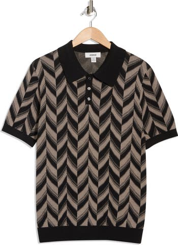 Enjoy the luxurious comfort of this preppy chevron-patterned polo knit from an ultrasoft silk-cotton blend.