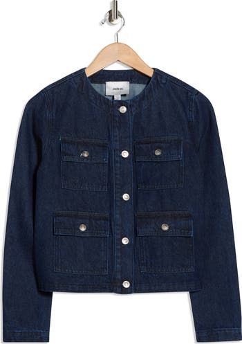 Show off timelessly cool style with this cropped denim jacket popped with utility-inspired pockets.