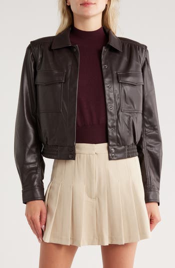 Supple faux leather brings rich texture to this snap-front jacket fashioned with a duo of patch pockets at the chest and an elasticized hem.