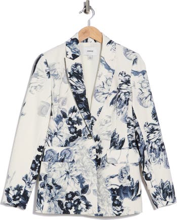Combine sweet style with power and confidence by topping your look with this woven blazer covered in a floral print.