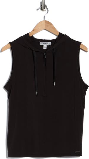 Perfect for running errands or heading to the gym, this sleeveless hoodie is designed with a sporty half zipper.