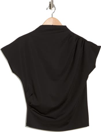 An elegant drape shapes the silhouette of this high-neck knit top that works beautifully at the office or out on the town.