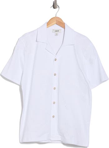 Tonal paisley embroidery delivers subtle bohemian charm to a cotton camp shirt that has you looking sharp and trendy.
