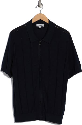 Pointelle stitch detailing at the shoulders adds extra flair to a zip-front polo knit from a breathable, ultrasoft cotton-modal blend and cut for a roomy fit.