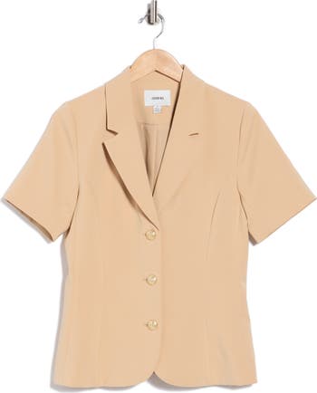 Gleaming buttons boost the polished style of this short-sleeve blazer framed by notched lapels and elegant princess seams.