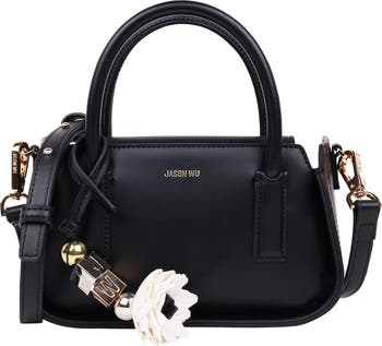 Gleaming hardware charms elevate this scaled-down structured handbag finished with an optional shoulder strap for versatile carrying.