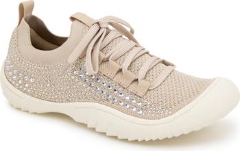 Sparkly rhinestones bling up this comfortable slip-on sneaker boasting an engineered-knit upper, arch-supportive cushioning and a durable grip sole.