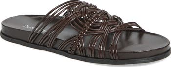 Slim, tubular straps knot and intertwine over the vamp of a weekend-ready slide sandal grounded by a contoured footbed with built-in arch support for a customized fit.