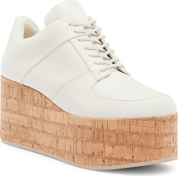 A towering cork platform bring bold style to this modern derby that puts a fun spin on classic workwear styling.