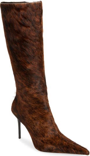 A pointy toe elongates the fierce and streamlined profile of a season-spanning boot lofted by a soaring heel and secured with a full-length side zipper.