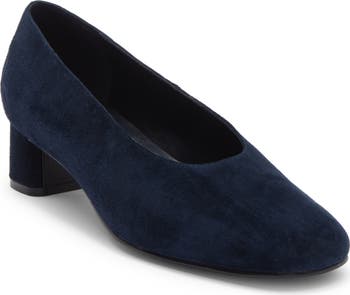 Exude timeless polish in this soft suede pump framed by a classic round toe and a modest wrapped heel.