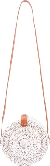 Woven rattan in a structured silhouette brings earthy texture to your look in this wear-anywhere crossbody bag finished with fabric lining.