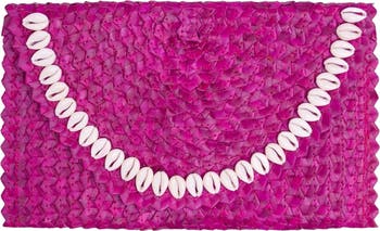 Handwoven raffia in a structured silhouette brings earthy texture to your look in this wear-anywhere clutch finished with delicate seashell trim.