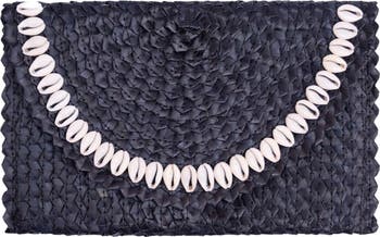 Woven raffia in a structured silhouette brings earthy texture to your look in this wear-anywhere clutch finished with delicate seashell trim.