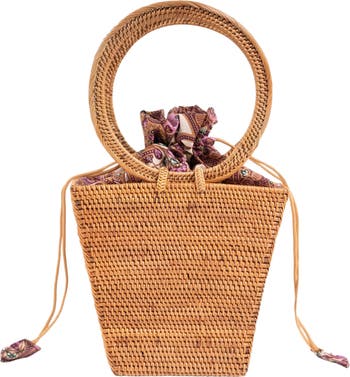 Ideal for casual outings or special occasions, this compact handbag is designed in a triangular shape from woven rattan.