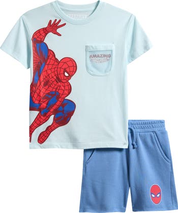 Spider-Man brings big, super-hero energy to this cotton-blend set that pairs a pocket T-shirt with coordinating sweat shorts.
