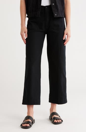 Patch pockets add utilitarian style points to these modern cropped jeans finished in a neutral tone for easy, everyday pairing.
