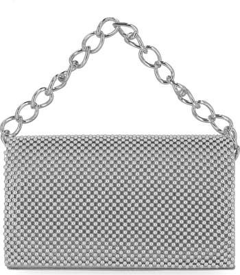 Add the perfect accessory element to any outfit with this stylish beaded metal mesh clutch.