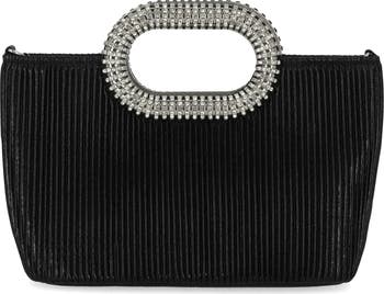 Texture-rich pleats and a jewel-encrusted top handles bring inspiration from art deco design to an elegant clutch. A secure magnetic closure and compact size are just right for your night-out essentials.