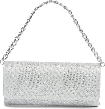 Polished chain hardware and shimmering embellishments amplify the eye-catching design of a metallic shoulder bag guaranteed to brighten any night-out ensemble.