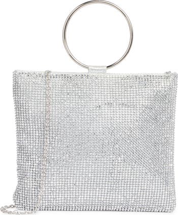 Add some sparkle to your next night out with this soft ring-top clutch equipped with a drop-in chain strap for a hands-free finish.