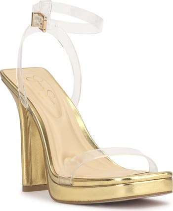 Translucent straps stand out against the metallic platform and heel of this stunning sandal that's destined for your next party or event.