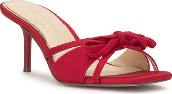 A dainty bow tops the open toe of this elegant mule sandal finished with a slender metallic spike heel for standout lift.