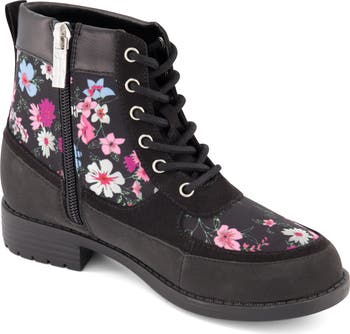 Keep your little one on-trend in a vibrant floral sneaker boot grounded by a chunky heel.