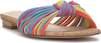 A chunky knot lends modern dimension to the vamp of a stylish slide sandal that will complement your warm-weather looks.
