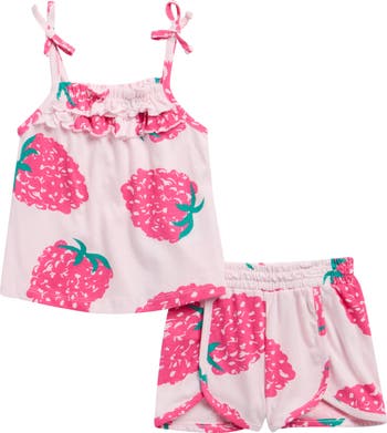 With ruffles, bows and an allover berry print, this tank top and shorts set will have baby looking extrasweet.