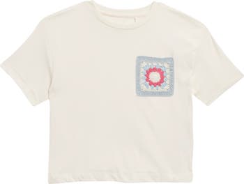 Brighten their day with this soft brushed jersey T-shirt that features a colorful crochet chest pocket.