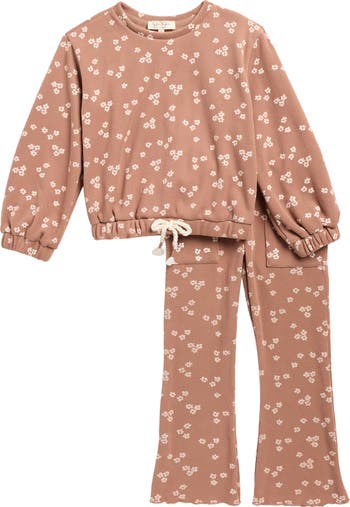 Your little one will love the cute look and cozy feel of this stretchy hacci knit set complete with floral pullover and wide-leg pants.