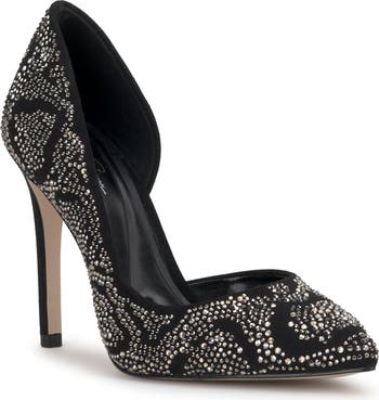 Elevate your look instantly with this striking pump covered in rhinestones.